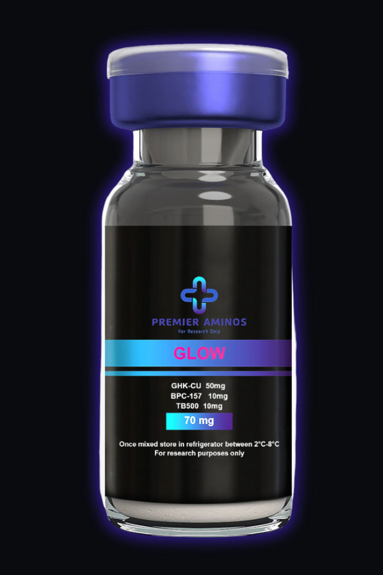 The GLOW peptide blend contains GHK-CU, BPC-157, and TB500 to support tissue regeneration, skin health, and recovery in a single formulation. It's designed for comprehensive rejuvenation-based research protocols.